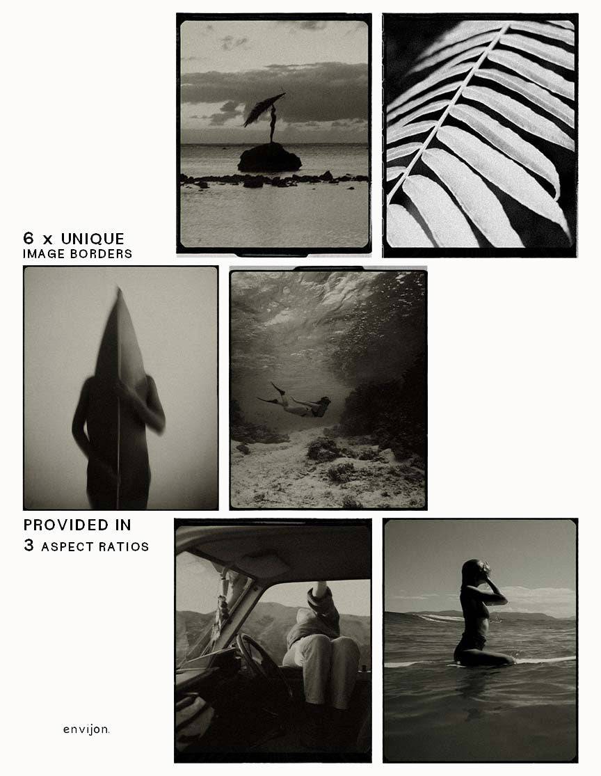 - – 6 x Film inspired image borders provided in various aspect ratios.