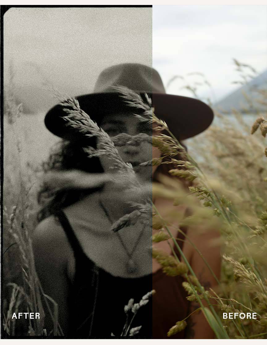 - – 4 x Film grain Lightroom Presets provided in varying strengths & textures.