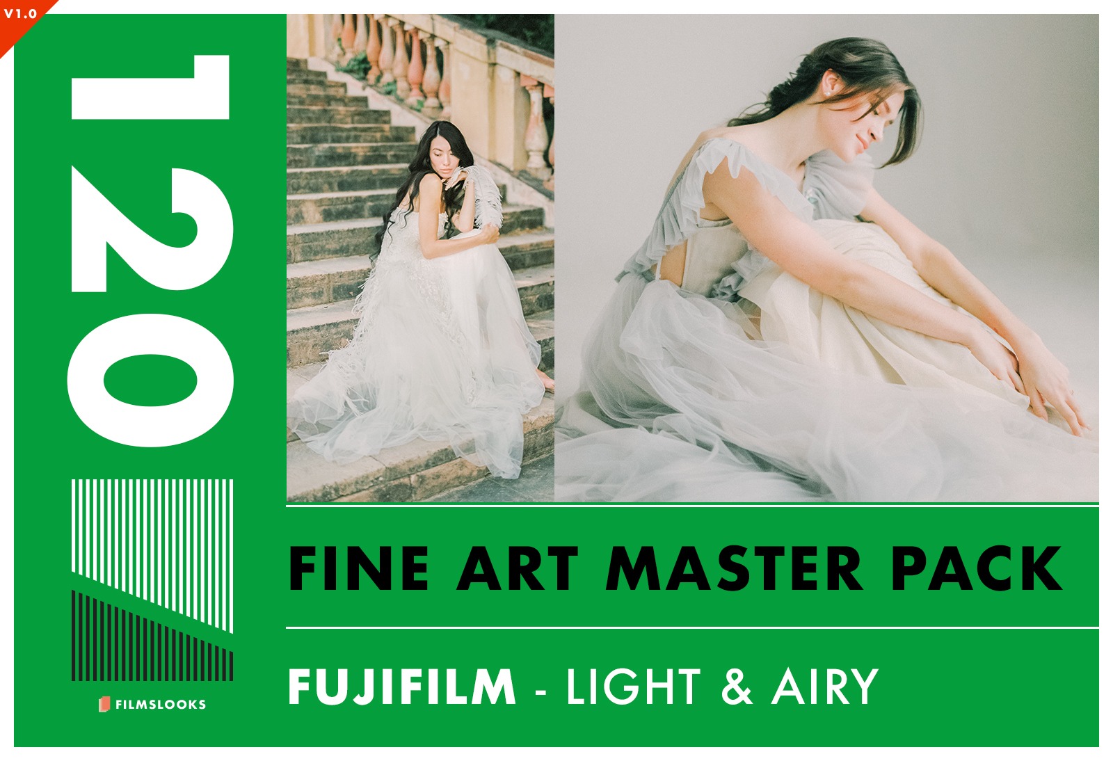 FILMSLOOKS- Fujifilm Master Pack được cải tiến hoàn toàn với các cấu hình mới để mang lại kết quả tốt nhất cho việc chỉnh sửa Light & Airy. Gói này được phát triển từ phim chính Fuji Pro 400H, Fuji Pro 160NS, Fuji IlFord HP5, Fuji Pro 800z, sau đó đẩy chúng vào việc mô phỏng màu được quét từ Frontier và Nuritsu. Nếu bạn thích màu Light & Airy cho đám cưới, thời trang, nhiếp ảnh thực phẩm, bạn sẽ yêu thích gói này.