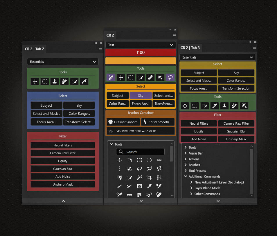Configurator Reloaded 2 — là một plugin mạnh mẽ cho Adobe Photoshop, được thiết kế để hợp lý hóa và cá nhân hóa quy trình làm việc của bạn. Nó cho phép người dùng tạo các bảng công cụ tùy chỉnh chỉ bằng cách kéo và thả các mục như công cụ, lệnh menu và mục, hành động, cọ vẽ, cài đặt trước công cụ và tập lệnh.